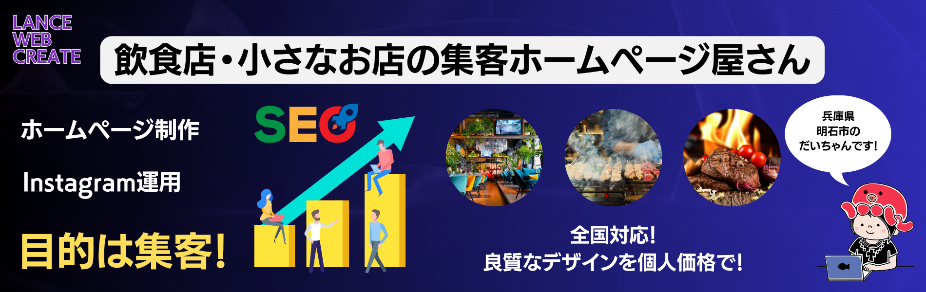 LANCE WEB CREATEは、兵庫県明石市のホームページ屋です。ホームページ制作、チラシ制作、SEO対策、などの支援をしております。