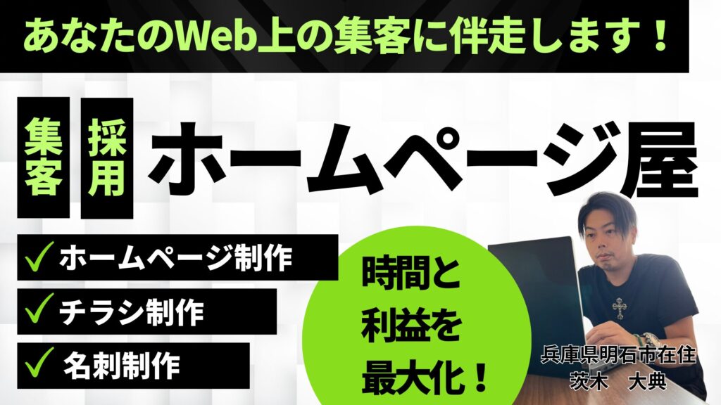 兵庫県明石市にてホームページ制作・ホームページ制作せミナーを実施しております。兵庫県明石市在住の茨木大典と申します。1982年生まれの43歳男性です。